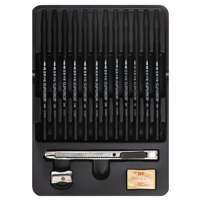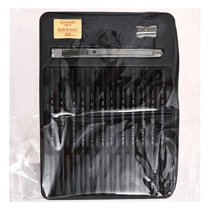 Карандаши цельнографитные, чёрные 12 шт. + ластик + точилка + нож канцелярский — Характеристики