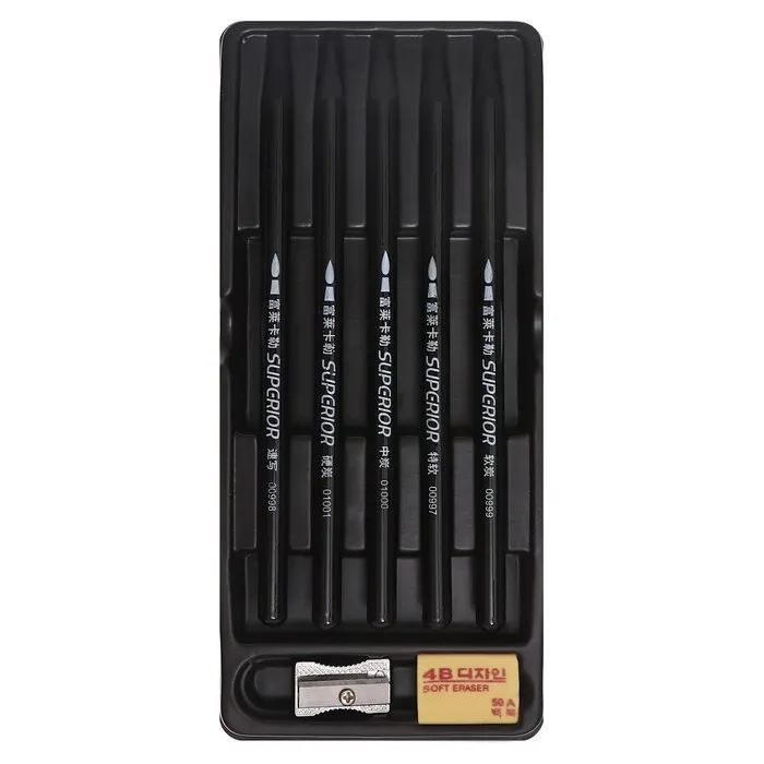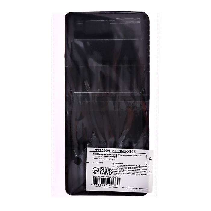 Карандаши цельнографитные, чёрные 5 шт. + ластик + точилка — Характеристики