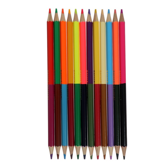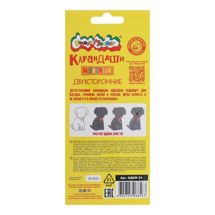 Карандаши цветные 12 шт., 24 цвета «Каляка-Маляка», двухсторонние, деревянные, шестигранные, картонная упаковка — Характеристики