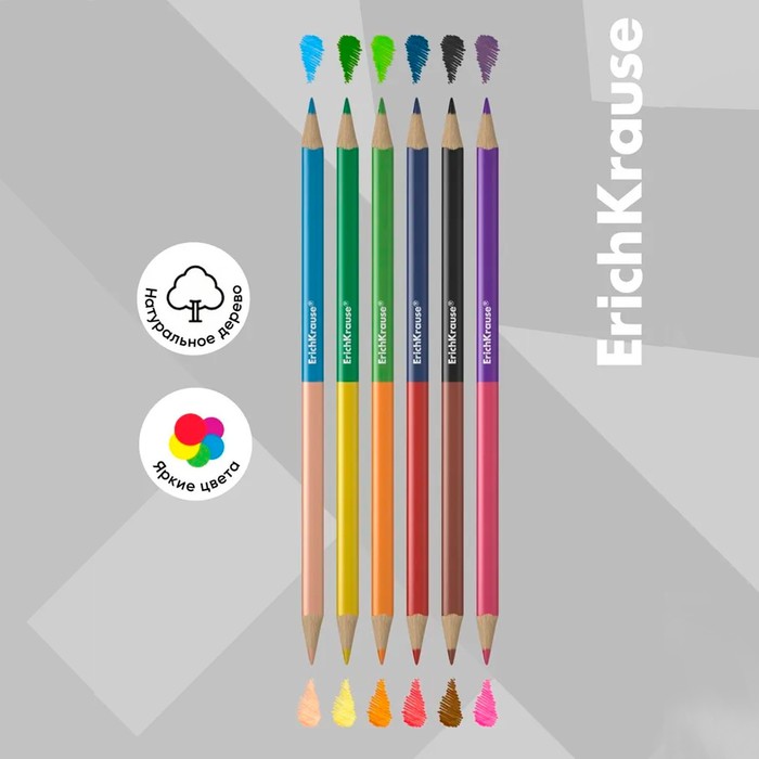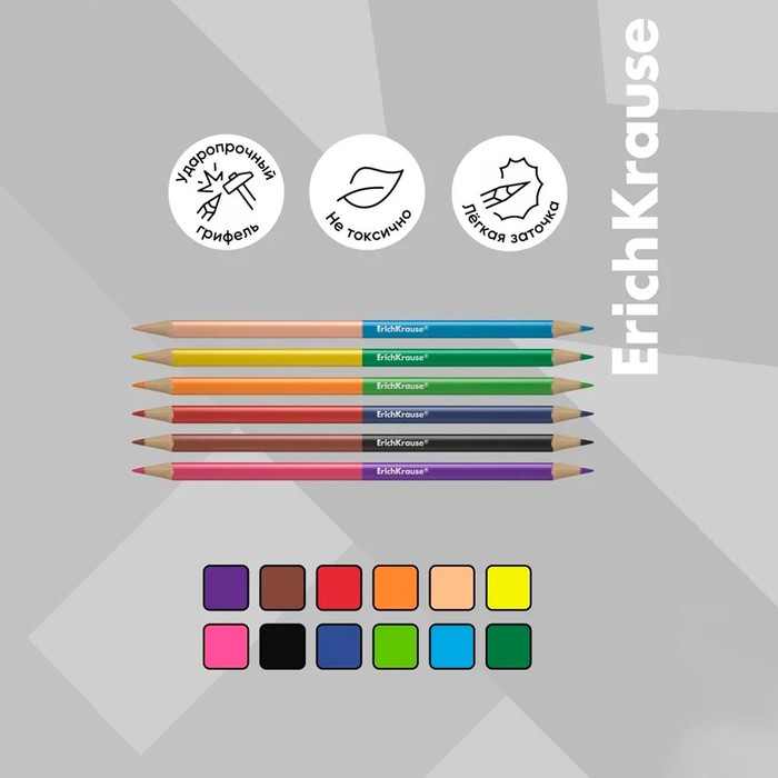 Двусторонние цветные карандаши ErichKrause® Basic c эргономичным трехгранным корпусом представлены в ярких сочныхцветах.