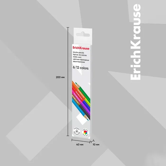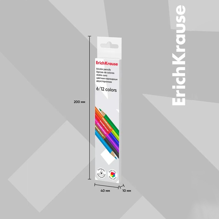 Карандаши цветные 12 цветов 6 шт., ErichKrause, двусторонние, дерево, трёхгранные, 2.6 мм грифель, картонная упаковка, европодвес — Характеристики
