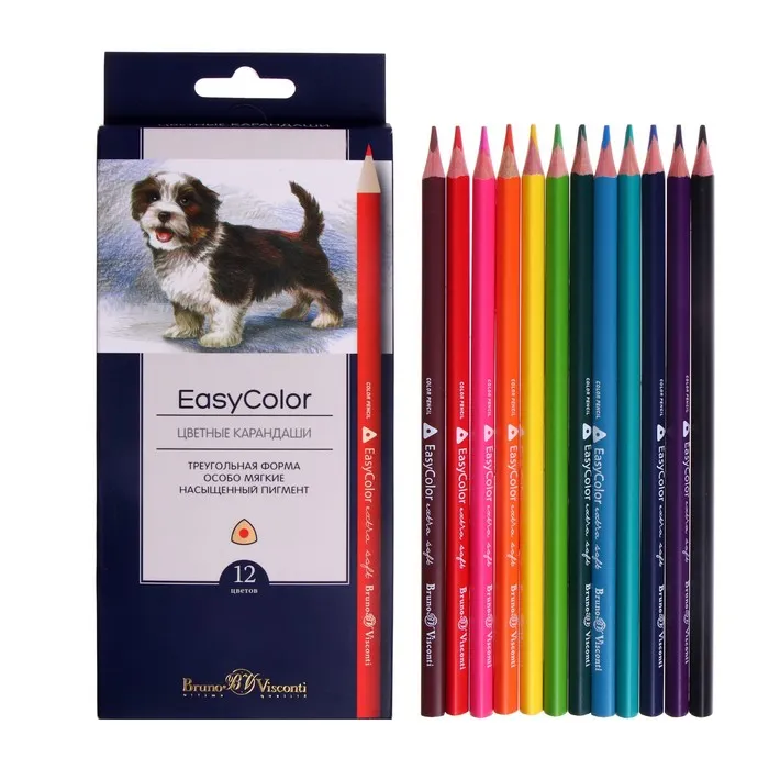 Карандаши цветные 12 цветов BrunoVisconti Easycolor, трёхгранные, особо мягкие