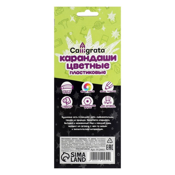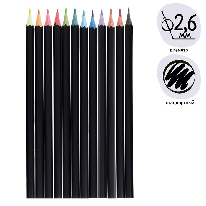 Карандаши цветные 12 цветов Calligrata, «Чёрная серия» заточенные, шестигранные, пластиковые, картонная упаковка, европодвес — Характеристики