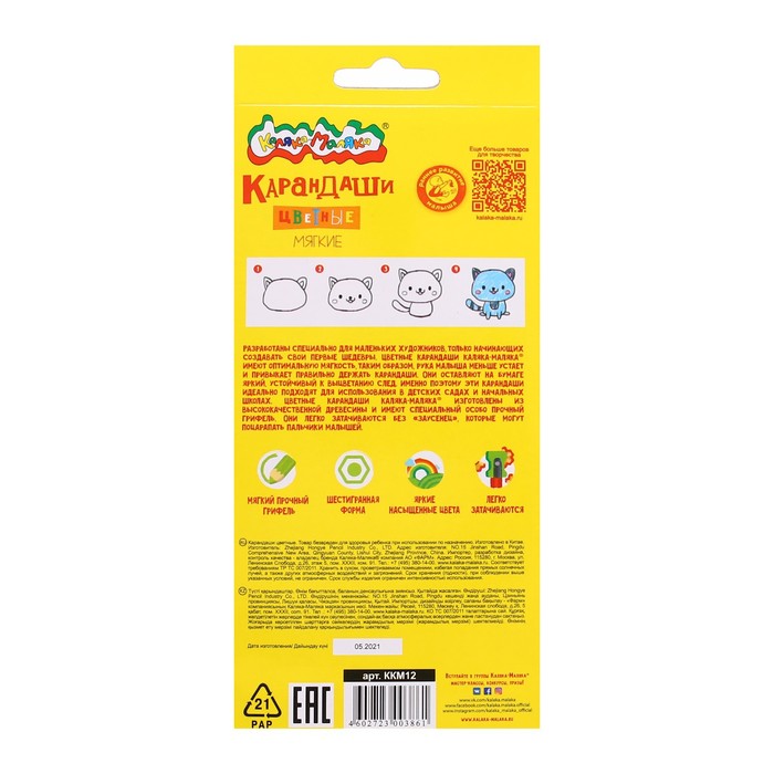 Карандаши цветные 12 цветов «Каляка-Маляка», шестигранные — Характеристики