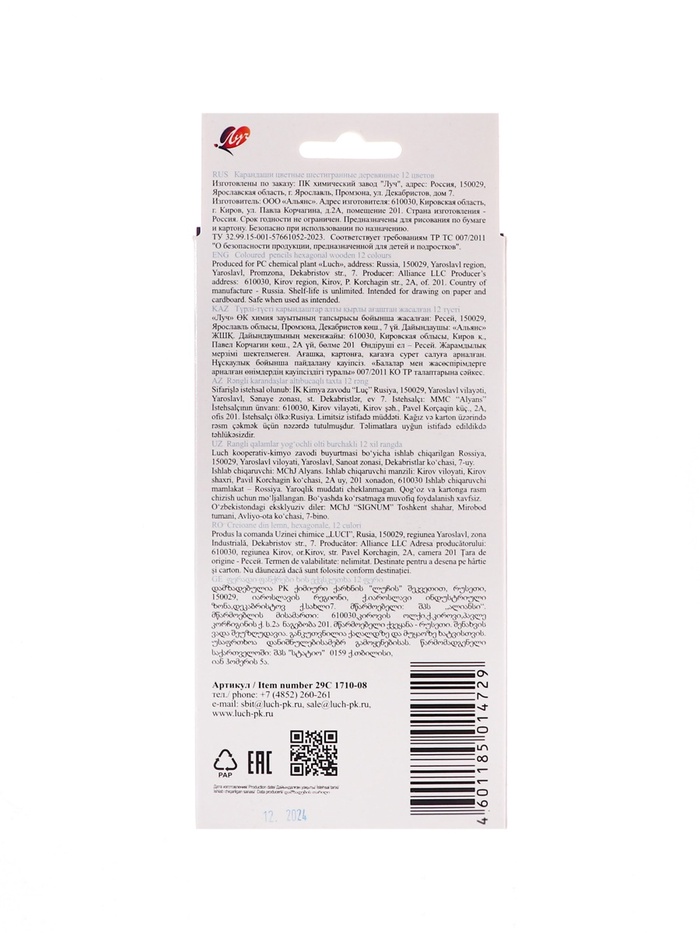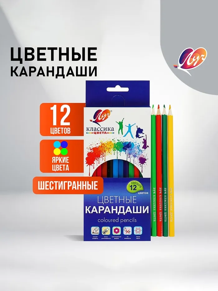 Карандаши цветные 12 цветов «Классика», шестигранные — Характеристики