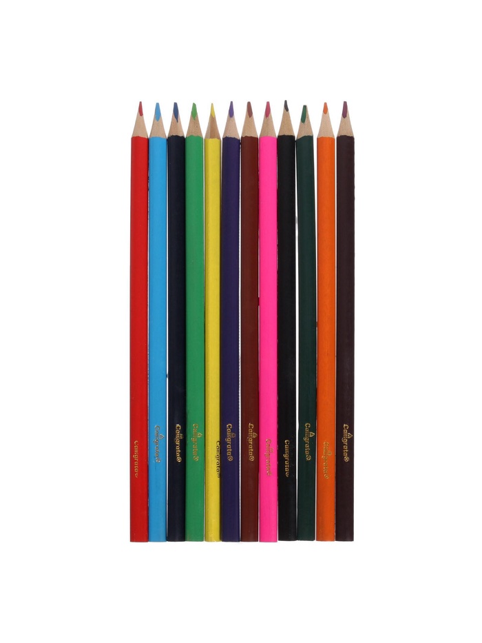 Карандаши цветные 12 цветов, корпус деревянный, треугольный, в картонной коробке — Характеристики