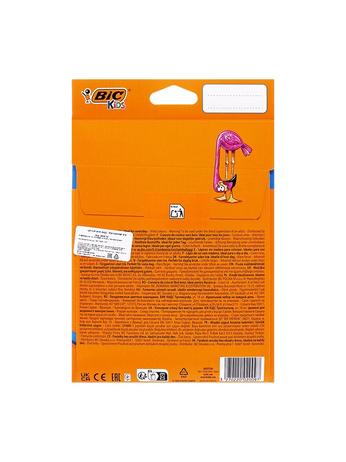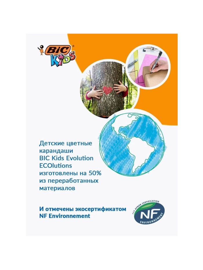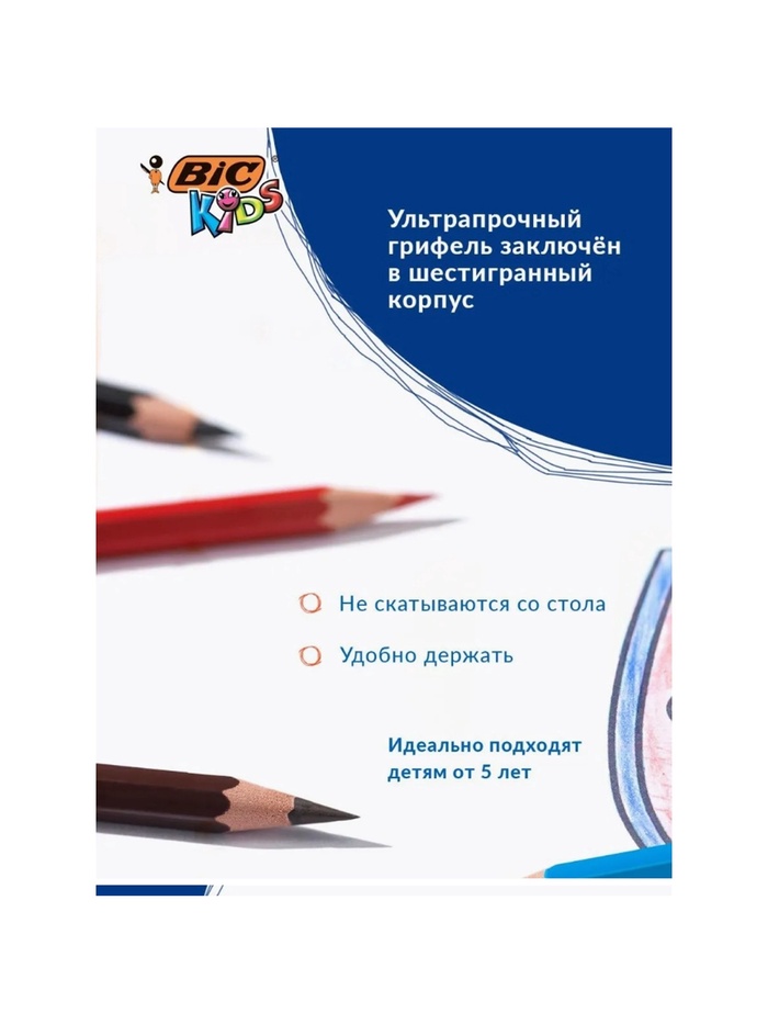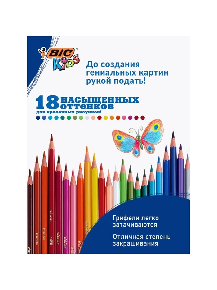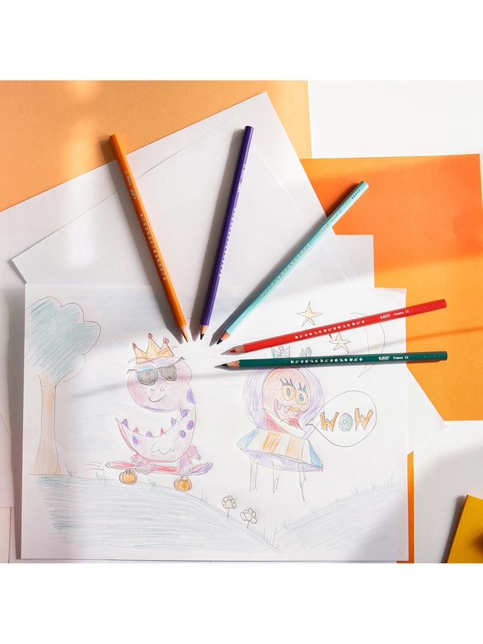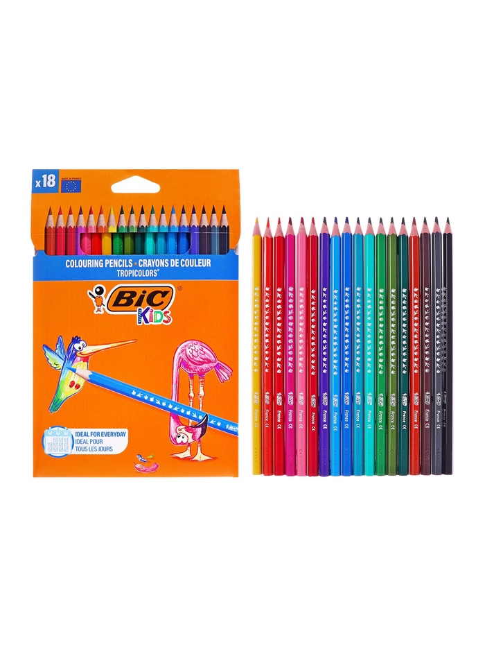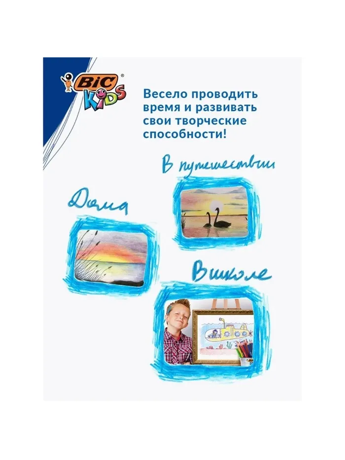 Цветные карандаши BIC Kids Tropicolors идеально подходят детям от 5 лет и старше. Корпус и грифель этих шестигранных карандашей для детей совпадают по цвету, поэтому дети очень легко найдут нужный среди всех. С грифелем диаметром 3,2 мм дети смогут легко создавать прекрасные рисунки. Насыщенный цветным пигментом грифель карандашей для рисования представлен 12 смелыми, яркими цветами. Карандаши изготовляют без использования древесины, поэтому они не образуют острых краёв на изломе. Уже более 65 лет BIC производит письменные принадлежности высокого качества. Линейка BIC Kids - это товары для рисования и раскрашивания, которые BIC разработала специально для развития творческого мышления у детей в начале их увлекательного пути в мир письма