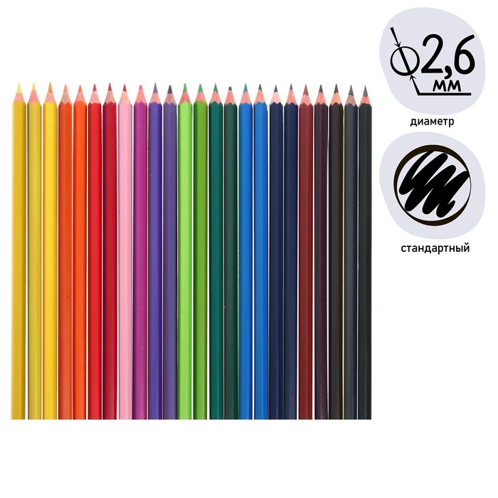 Набор цветных карандашей, 24 цветa, предназначен для детского творчества.