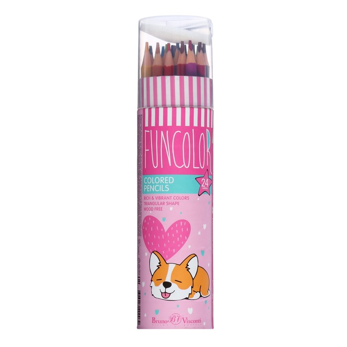 Карандаши цветные 24 цвета Funcolor пластиковые, в картонной тубе, МИКС
