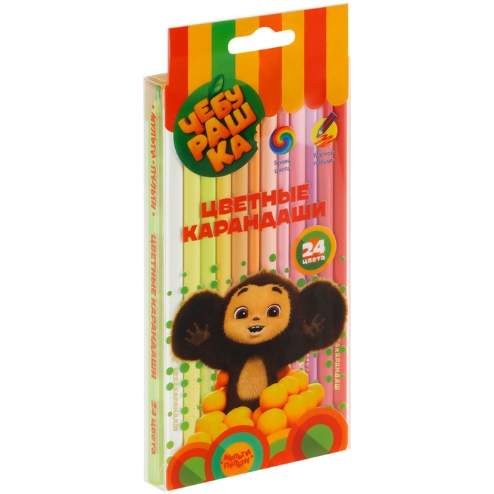 Карандаши цветные 24 цвета, пластиковые «Мульти-Пульти. Чебурашка», заточенные, европодвес — Характеристики