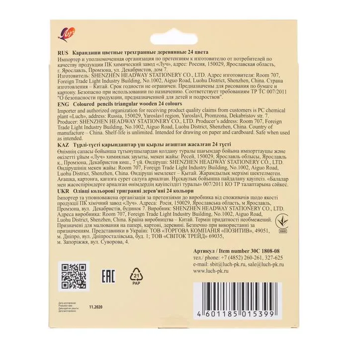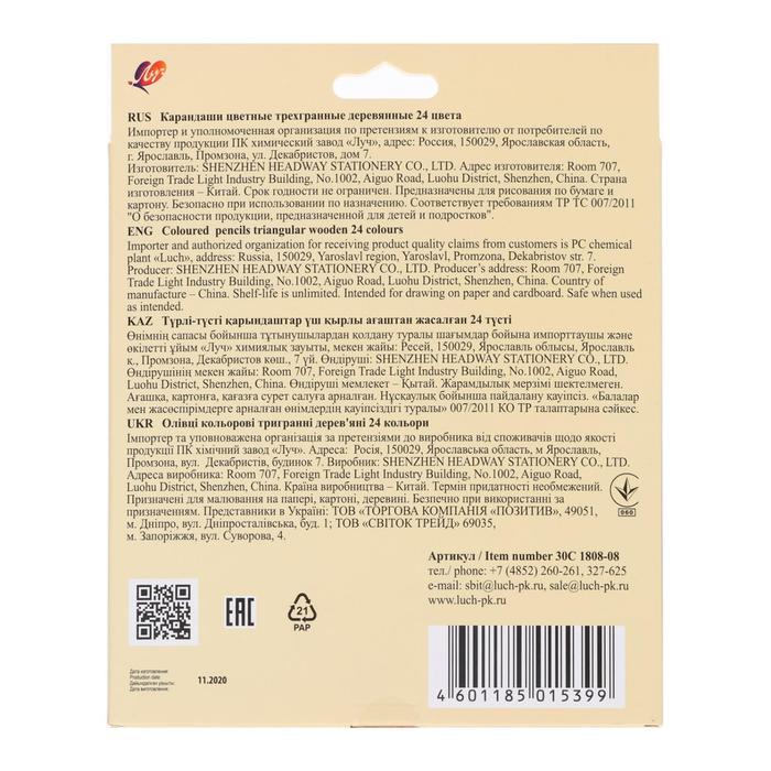 Карандаши цветные 24 цвета «Школа Творчества», трёхгранные — Характеристики