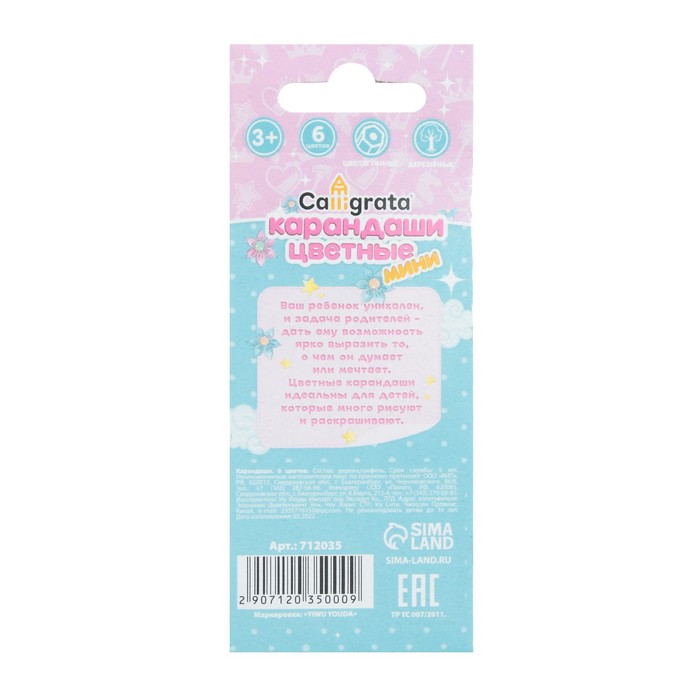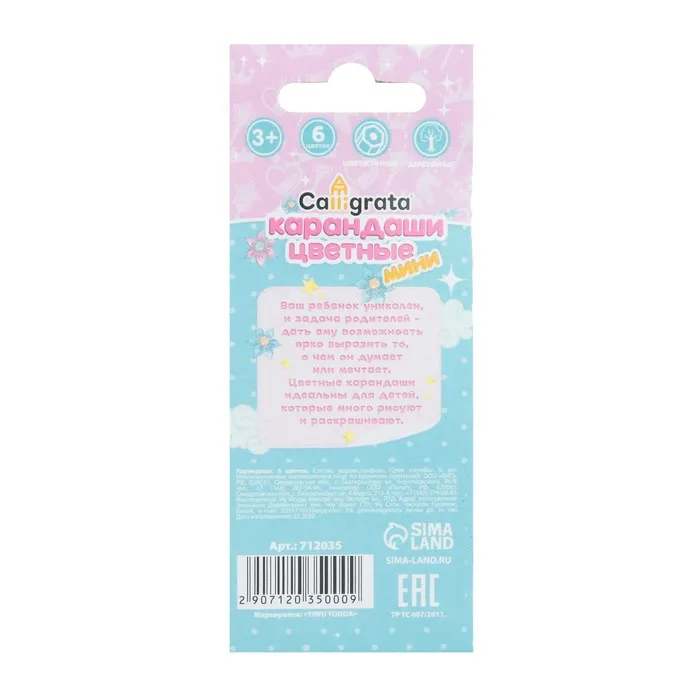Карандаши цветные 6 цветов Calligrata МИНИ «Принцесса», деревянные, шестигранные — Характеристики