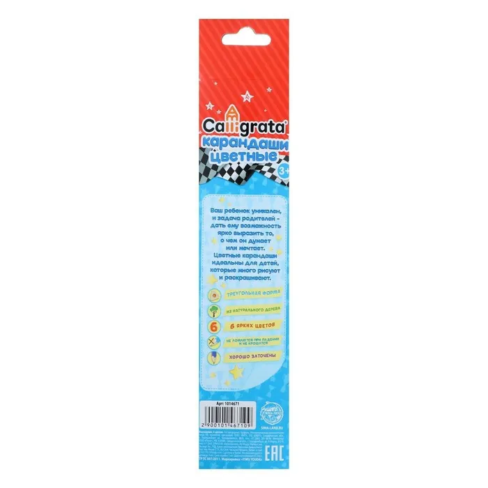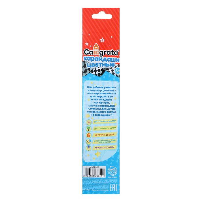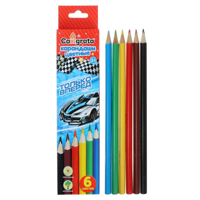 Карандаши цветные 6 цветов «Машинка», корпус деревянный, треугольный, в картонной коробке — Характеристики