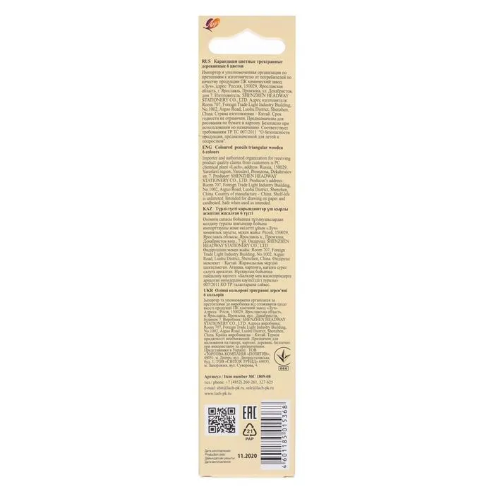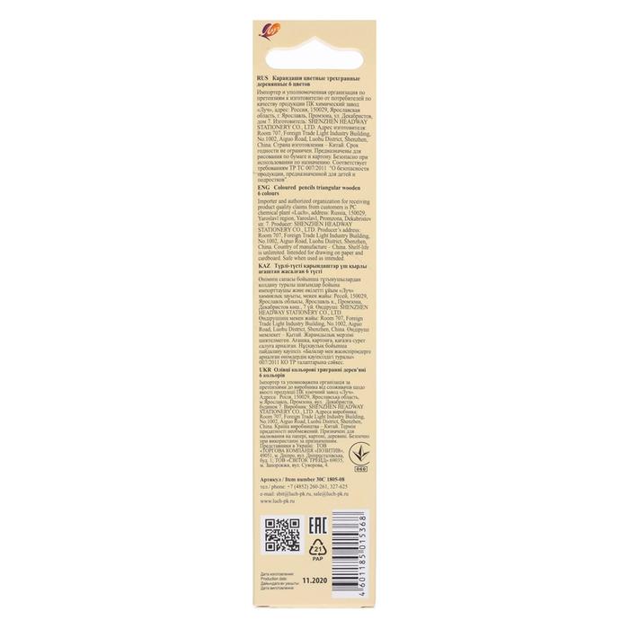 Карандаши цветные 6 цветов «Школа Творчества», трёхгранные — Характеристики