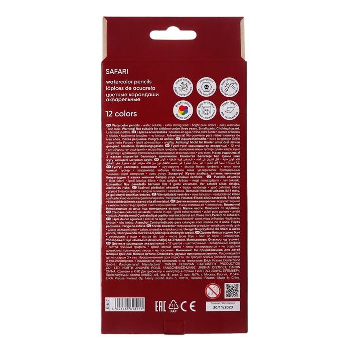 Карандаши цветные акварельные 12 цветов ErichKrause Safari, шестигранные, с кисточкой, европодвес — Характеристики
