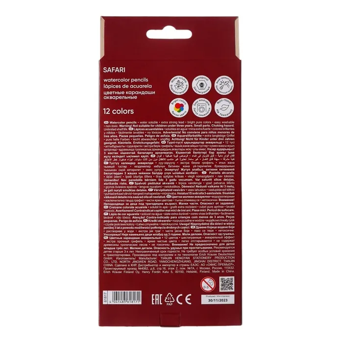 Акварельные шестигранные цветные карандаши из отборной древесины с суперярким грифелем. После нанесения на бумагу след от карандаша может быть использовн для создания акварельного эффекта при помощи воды и кисточки, входящей в комплект. Грифель диаметром 3.3 мм не царапает бумагу и не крошится при рисовании. Специальная пропитка древесины и сплошная проклейка грифеля обеспечивают высокую ударопрочность. Мягкая древесина и идеальная центровка грифеля гарантируют легкую заточку с экономным расходом карандаша. Европейский сертификат качества (СЕ) гарантирует отсутствие в составе токсичных веществ.
