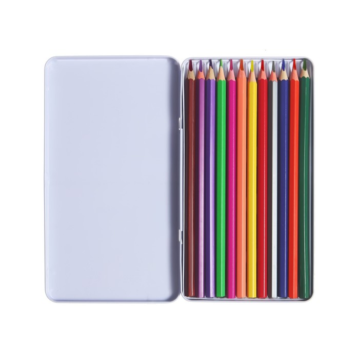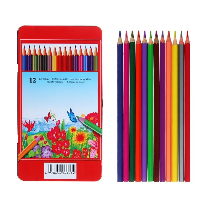 Карандаши цветные акварельные 12 цветов, корпус деревянный, шестигранные, в металлической коробке — Характеристики