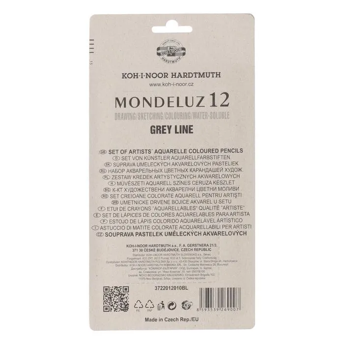 Карандаши цветные акварельные Koh-I-Noor Mondeluz 3722, 12 шт., серая гамма, в металлическом пенале в блистере — Характеристики