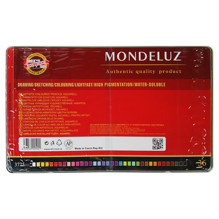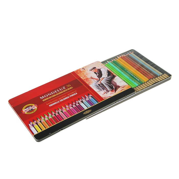Карандаши цветные акварельные набор 36 цветов, Koh-I-Noor Mondeluz 3725, в металлическом пенале — Характеристики