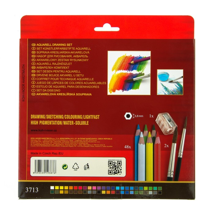 Карандаши цветные акварельные набор 48 цветов Koh-I-Noor Mondeluz 3713 + точилка + кисть 2 шт. — Характеристики