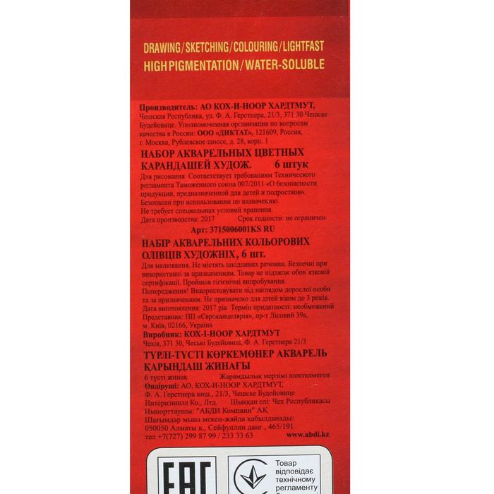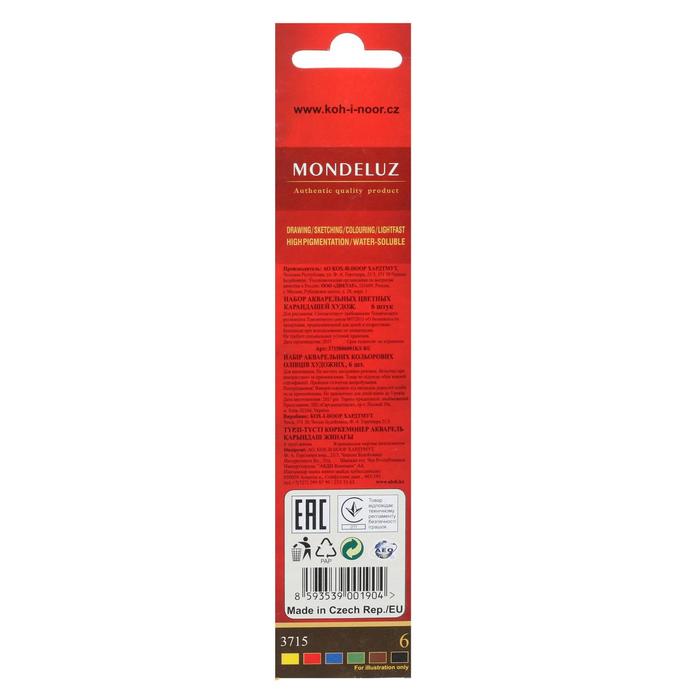 Карандаши цветные акварельные набор 6 цветов Koh-I-Noor Mondeluz 3715 — Характеристики