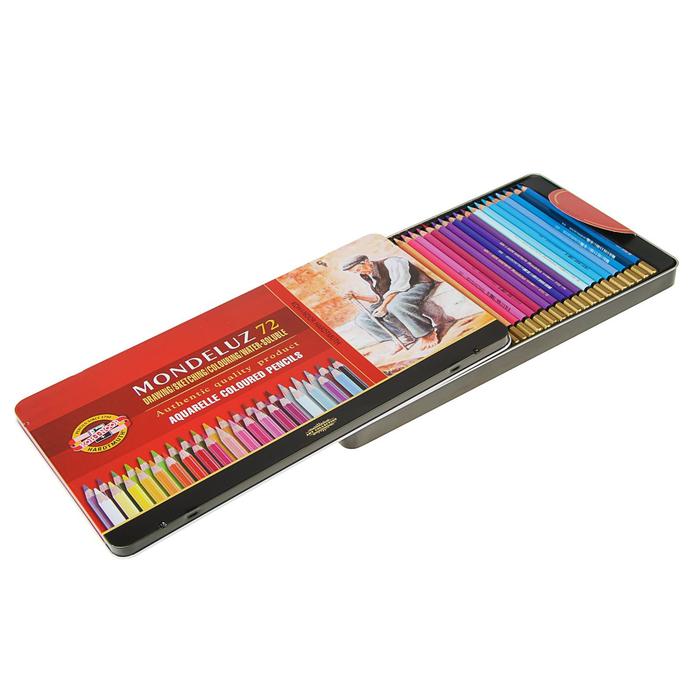 Карандаши цветные акварельные набор 72 цвета, Koh-I-Noor Mondeluz 3727, в металлическом пенале