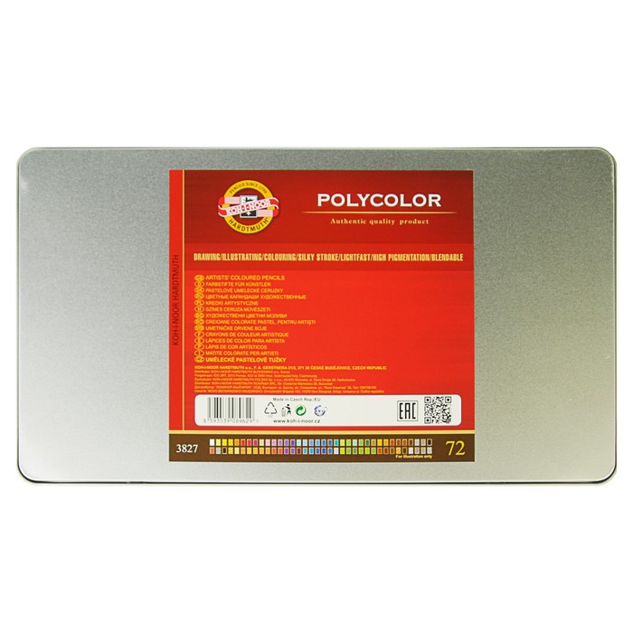Карандаши цветные художественные 72 цвета, Koh-I-Noor PolyColor 3827, мягкие, в металлическом пенале — Характеристики
