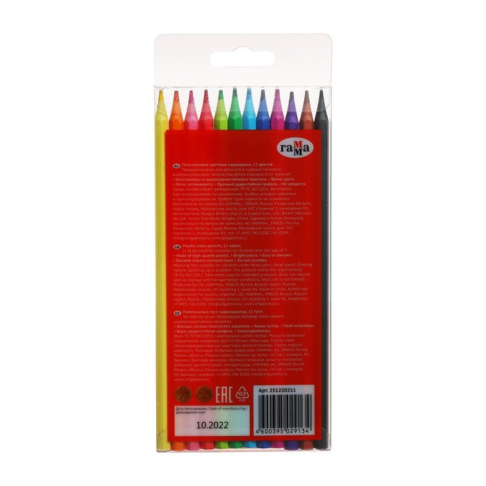 Цветные пластиковые карандаши "ГАММА" серии "Мультики" выполнены в стильном шестигранном корпусе из высококачественного пластика. В наборе 12 цветов: желтый, красный, зеленый темный, светло-голубой, темно-коричневый, черный, оранжевый, розовый, зеленый, синий, фиолетовый, фиалковый. Диаметр грифеля – 3 мм. Проклеенный ударопрочный грифель не крошится во время заточки и не ломается даже после падения. Корпус карандаша диаметром 7 мм и длиной 174 мм изготовлен из пластика. За яркость и высокую укрывистость отвечают качественные пигменты в составе. Ребенку не придется сильно давить на карандаш – рисунок получится ярким и равномерно закрашенным. Упаковка – прозрачная пластиковая коробка с европодвесом.