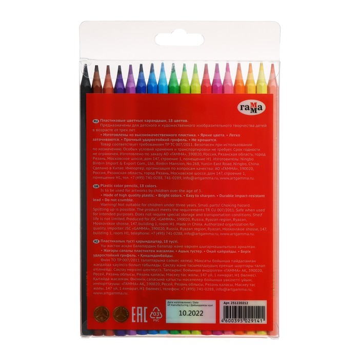 Цветные пластиковые карандаши "ГАММА" серии "Мультики" выполнены в стильном шестигранном корпусе из высококачественного пластика. В наборе 18 цветов: желтый, красный, зеленый темный, светло-голубой, темно-коричневый, черный, оранжевый, розовый, зеленый, синий, фиолетовый, фиалковый, желто-зеленый, желтый темный, телесный, голубой, кармин розовый, коричневый. Диаметр грифеля – 3 мм. Проклеенный ударопрочный грифель не крошится во время заточки и не ломается даже после падения. Корпус карандаша диаметром 7 мм и длиной 174 мм изготовлен из пластика. За яркость и высокую укрывистость отвечают качественные пигменты в составе. Ребенку не придется сильно давить на карандаш – рисунок получится ярким и равномерно закрашенным. Упаковка – прозрачная пластиковая коробка с европодвесом.