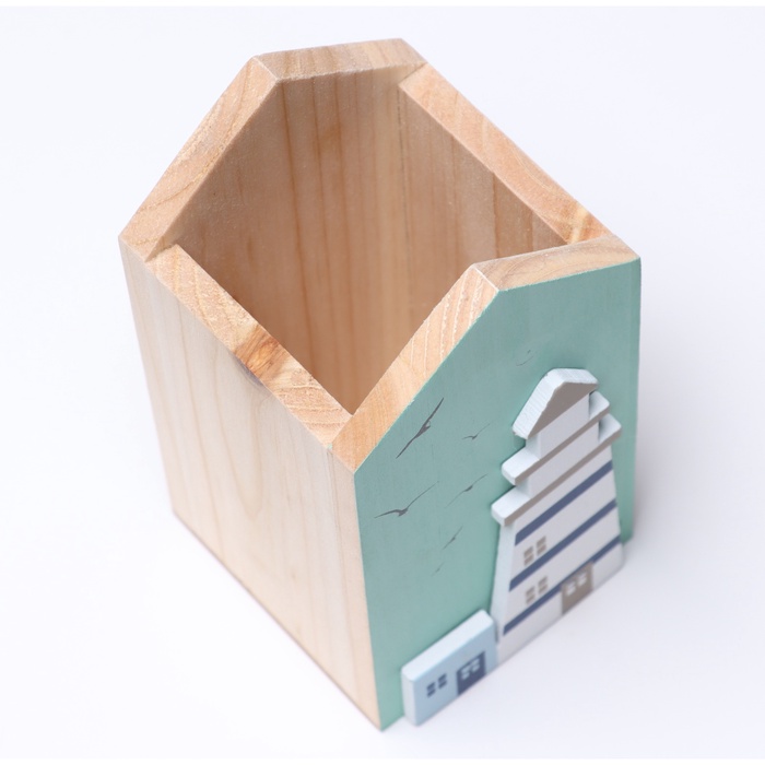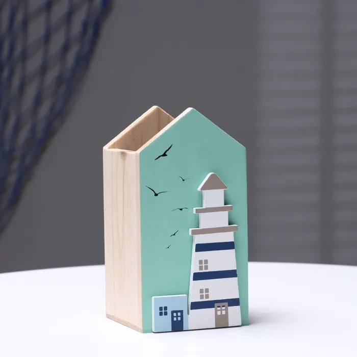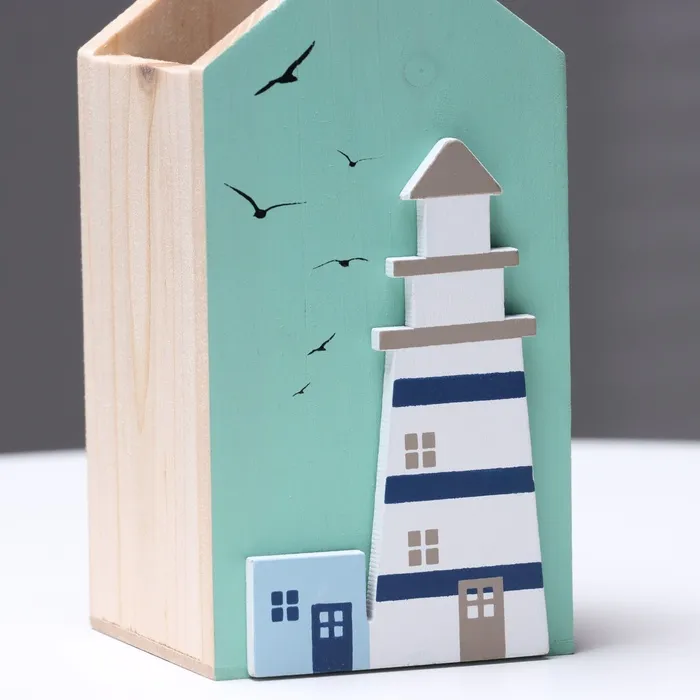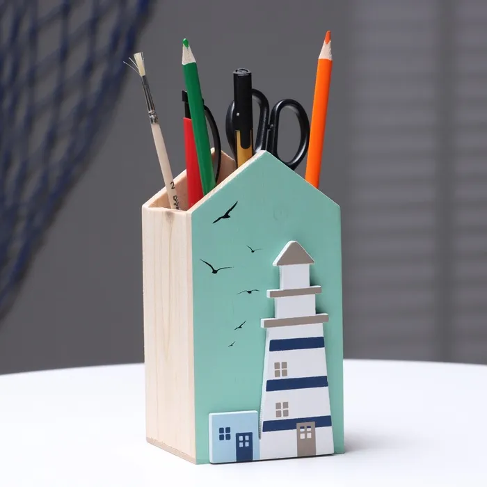 Пусть ваш письменный стол излучает уют и вдохновение с этим оригинальным аксессуаром. Подставка в форме маяка — это не просто удобное место для хранения ручек и карандашей, а настоящий символ творчества и порядка, выполненный из натурального дерева с тщательной детализацией.