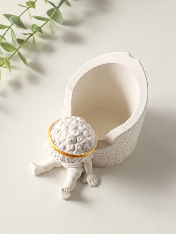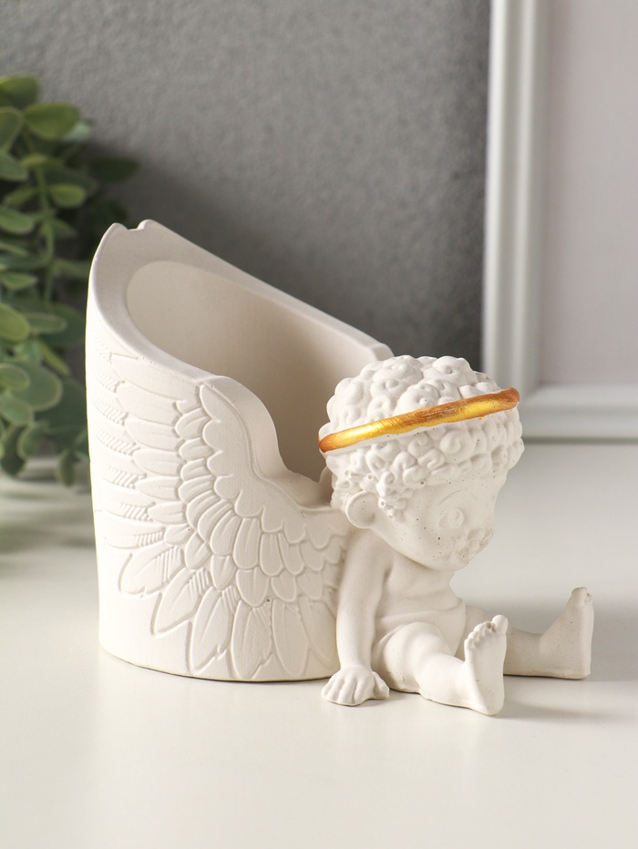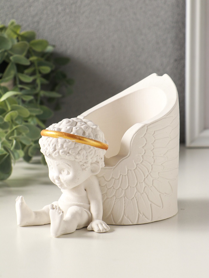 Карандашница сувенирная «Ангел», 12×10 см, гипс, белый с золотом