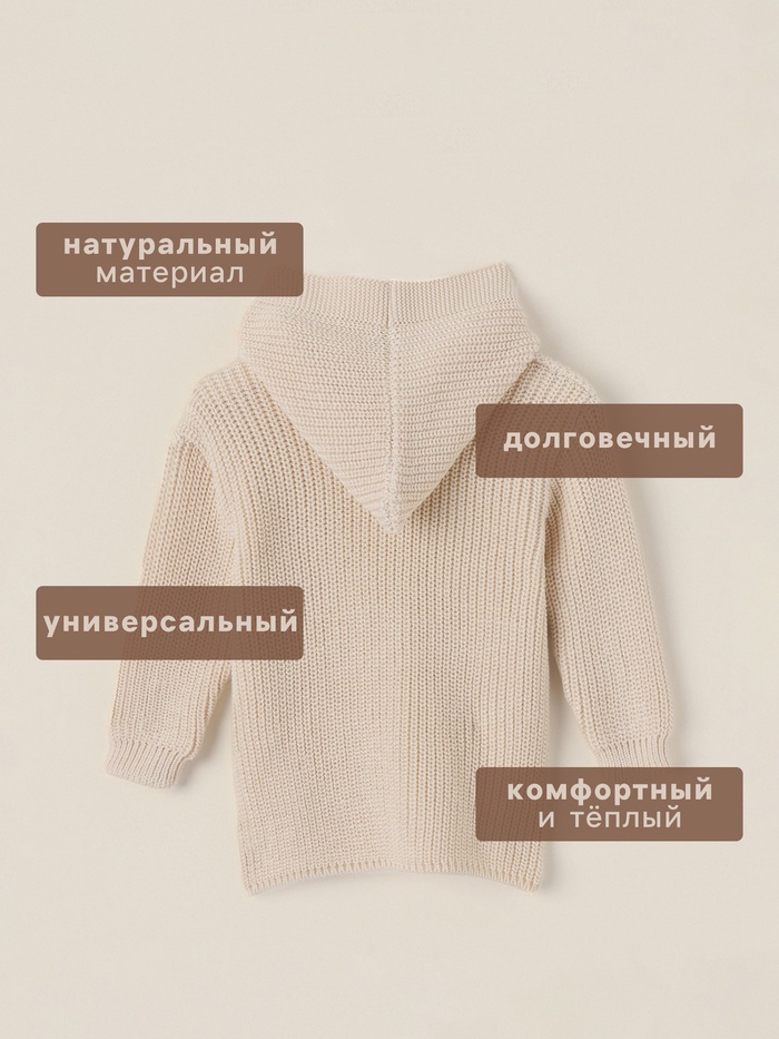 Кардиган вязаный с капюшоном SL Home, рост 86-92 см, молочный — Характеристики