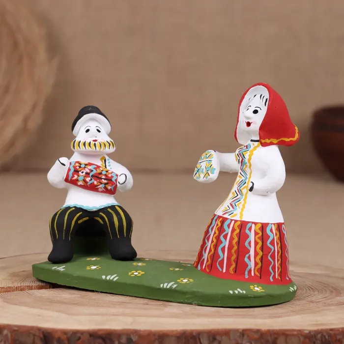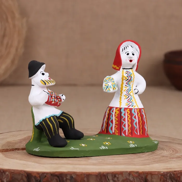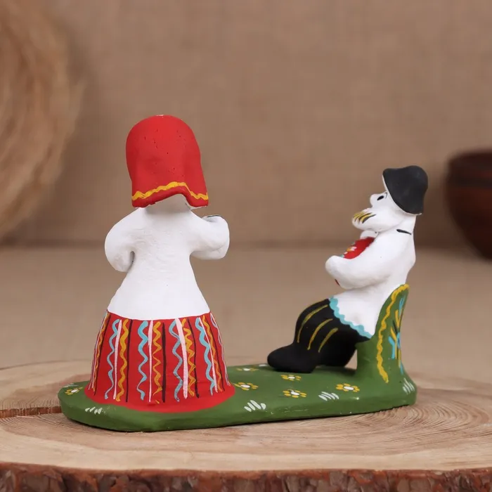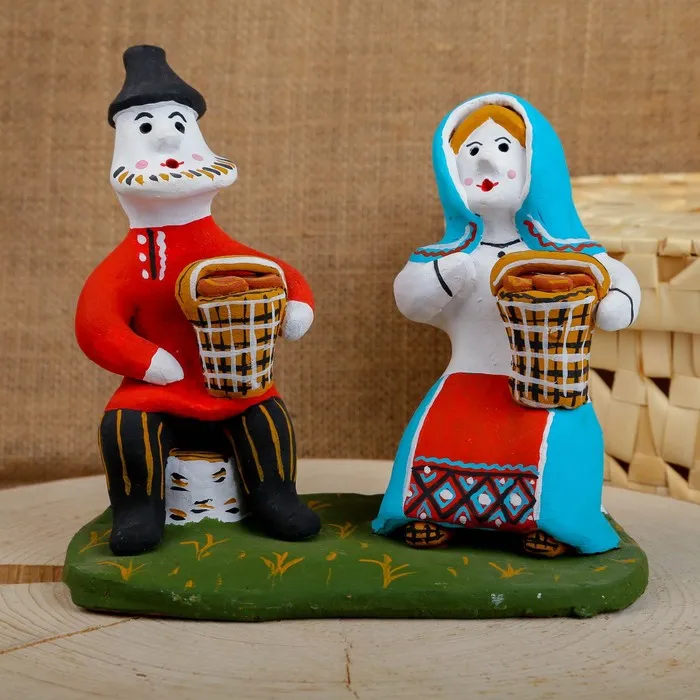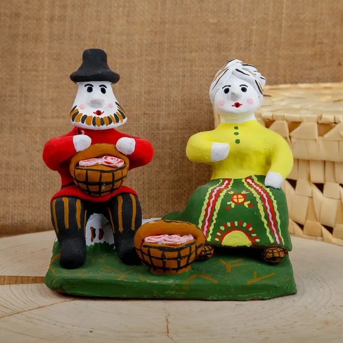 Каргопольская игрушка «Фигурка: Мужик с бабой на пнях», керамика, 16×7×14.5 см, МИКС — Характеристики