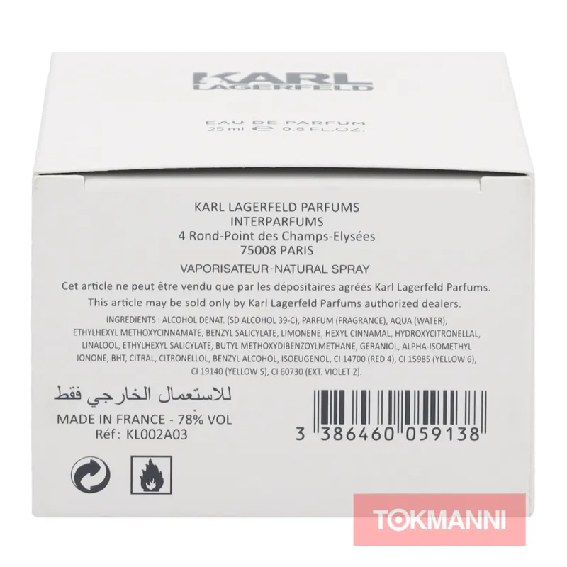 Эта парфюмерная вода представлена в удобном флаконе объемом 25 мл, что позволяет всегда иметь любимый аромат под рукой. Karl Lagerfeld Pour Femme – это отличное сочетание свежих и цветочных нот, которые создают изысканный ароматический букет. Идеальный выбор для уверенных в себе женщин, которые ценят качество и стиль. Не упустите возможность подчеркнуть свою индивидуальность с этим уникальным ароматом.
