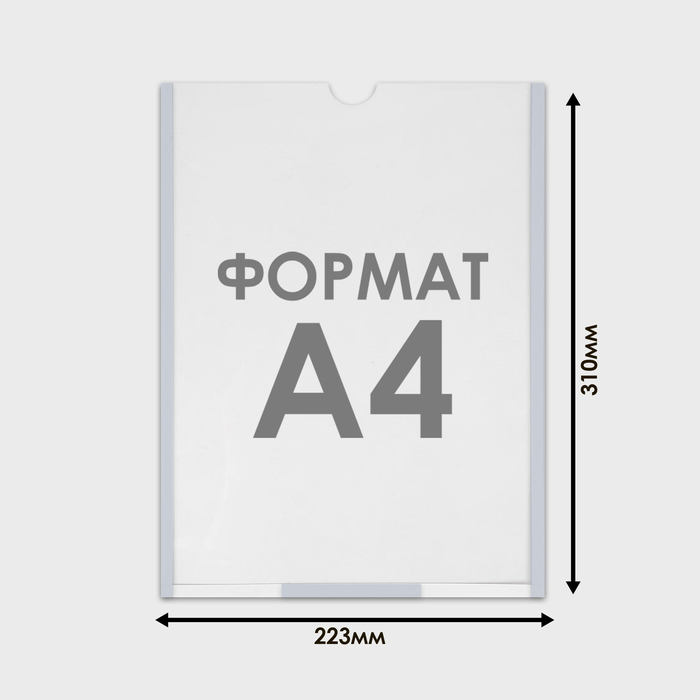 Настенный подвесной карман предназначен для брошюр, листовок, каталогов, меню и других информационных носителей, документов, фото, рекламных материалов, карточек или рисунков. Изделие имеет вырез для листа и самоклеящуюся окантовку, располагать его можно как вертикально, так и горизонтально. Подходит для размещения внутри помещения.