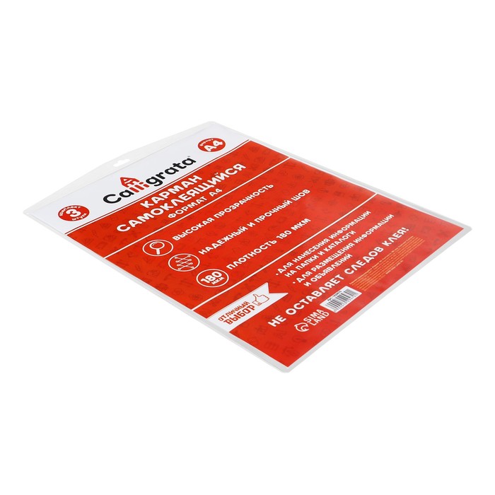 Карман самоклеящийся А4, 223×303 мм, комплект 3 штуки, Calligrata, 180 мкм, на лицевую сторону папок и любые гладкие поверхности — Характеристики