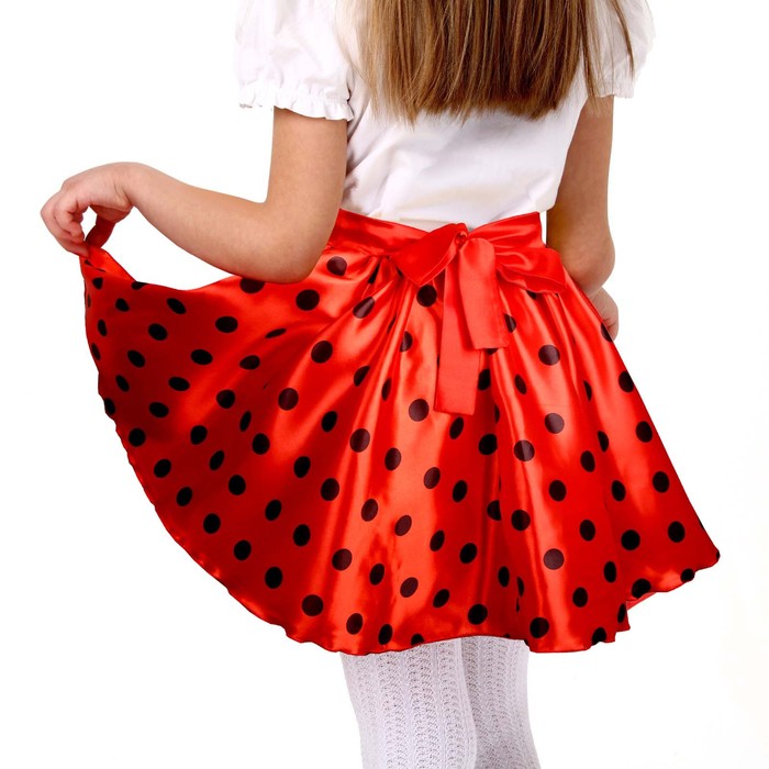 Карнавальная юбка для вечеринки красная в чёрный горох, повязка, рост 122-128 см — Характеристики