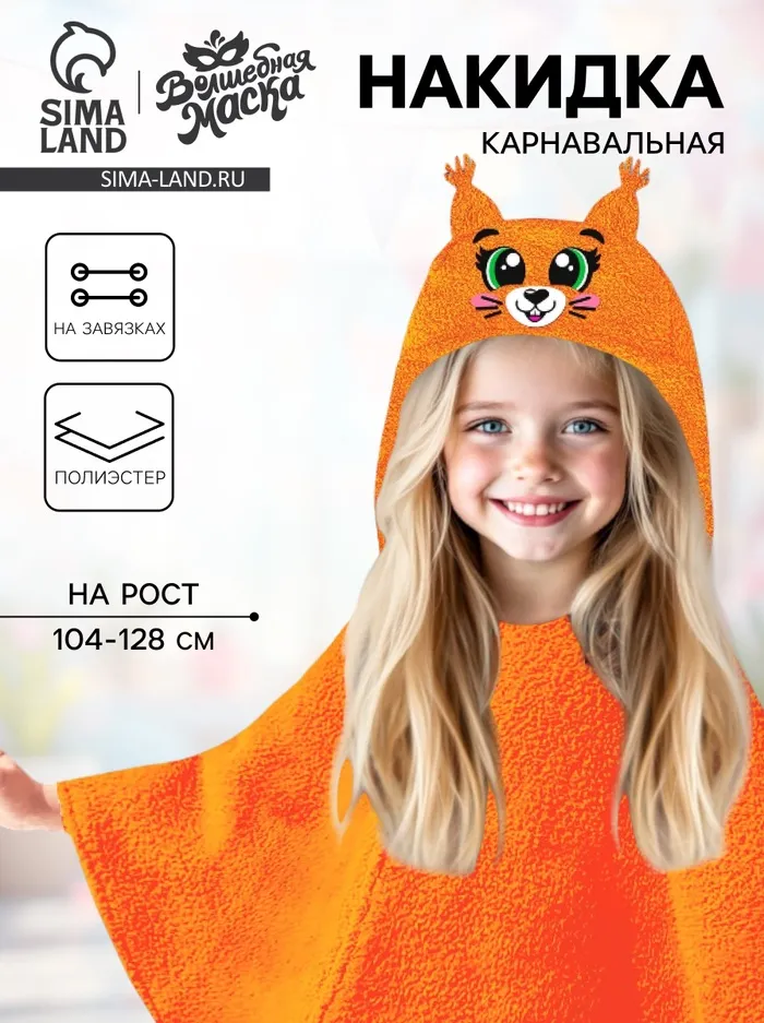 Накидка «Рыжий бельчонок» создаёт образ без сложных костюмов. Она лёгкая, практичная и занимает минимум места при хранении. Ребёнок будет чувствовать себя свободно, ведь накидка не стесняет движений.