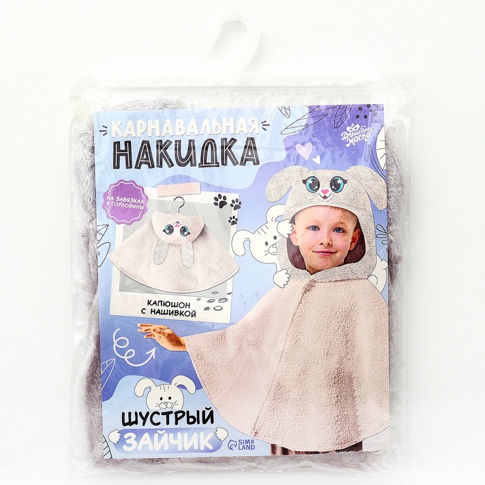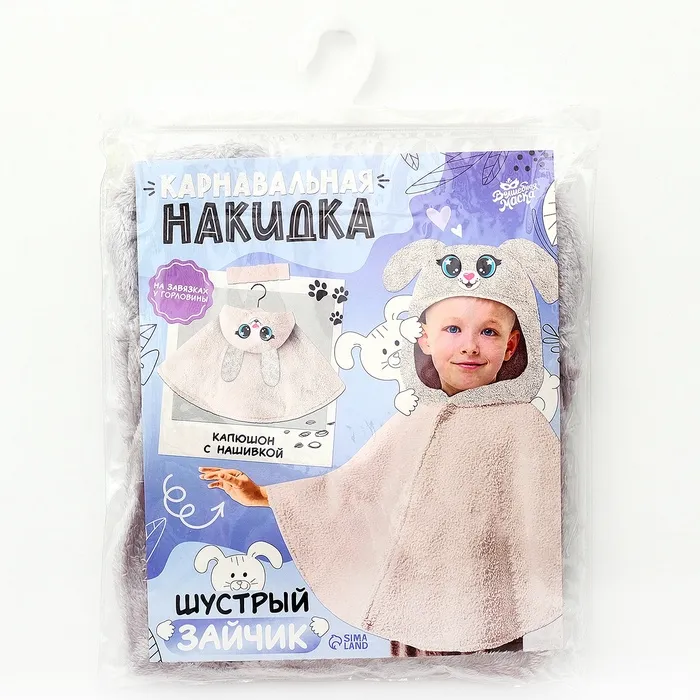 Накидка «Шустрый зайчик» создаёт образ без сложных костюмов. Она лёгкая, практичная и занимает минимум места при хранении. Ребёнок будет чувствовать себя свободно, ведь накидка не стесняет движений.