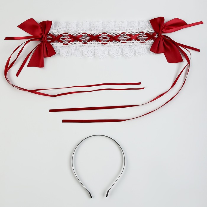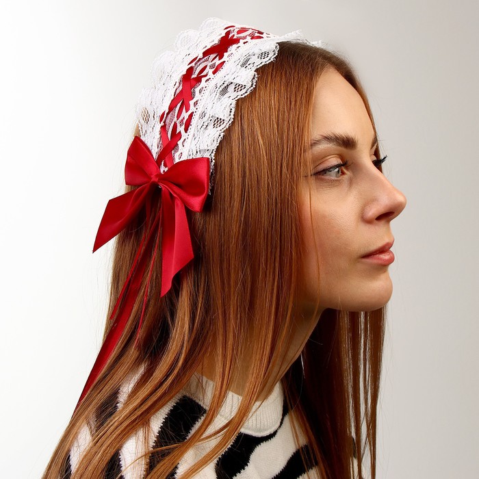 Карнавальная повязка «Лолита», цвет красный с белой тесьмой