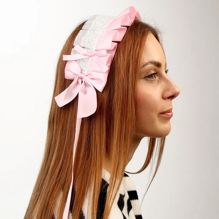 Карнавальная повязка «Лолита», цвет розовый с белым кружевом — Характеристики