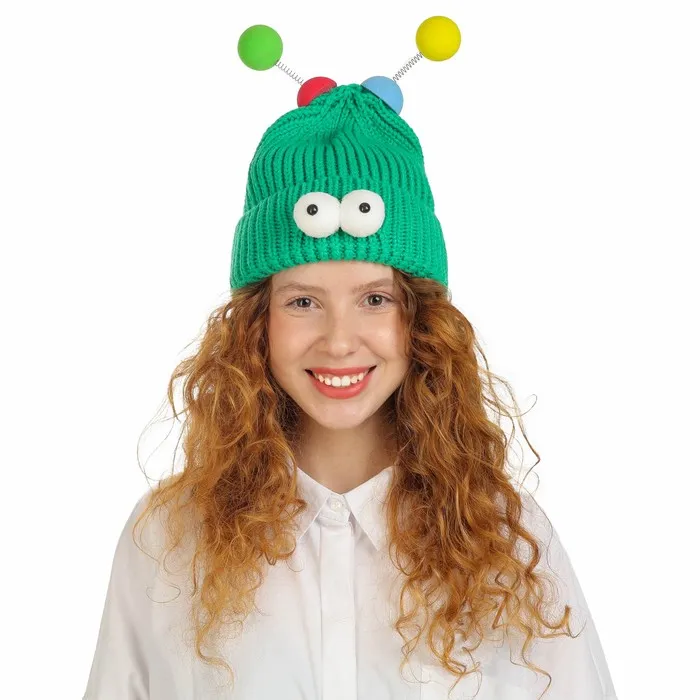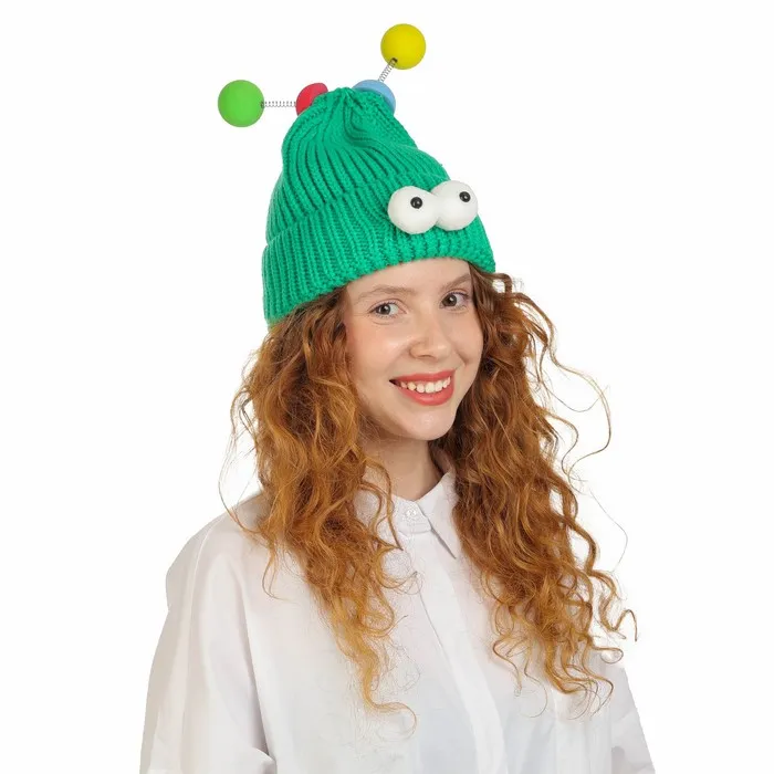 Карнавальная шапка «Глазастик» с рожками р-р 56-58, зелёная — Характеристики