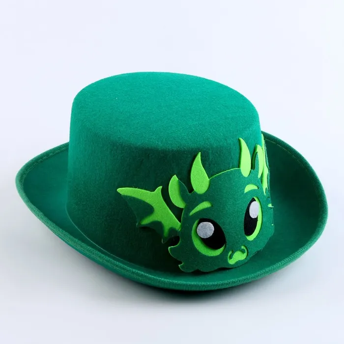 Эта карнавальная шляпа поможет создать яркий и запоминающийся образ на празднике. Шляпа выполнена из фетра и украшена изображением желтого дракона, что придаёт ей особую привлекательность.