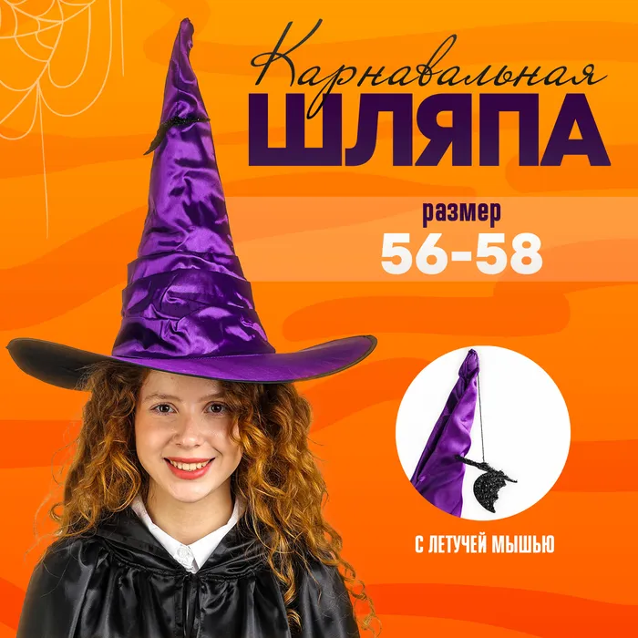 Карнавальная шляпа «Фиолетовая», драпированная, с летучей мышью, р. 56 – 58 — Характеристики