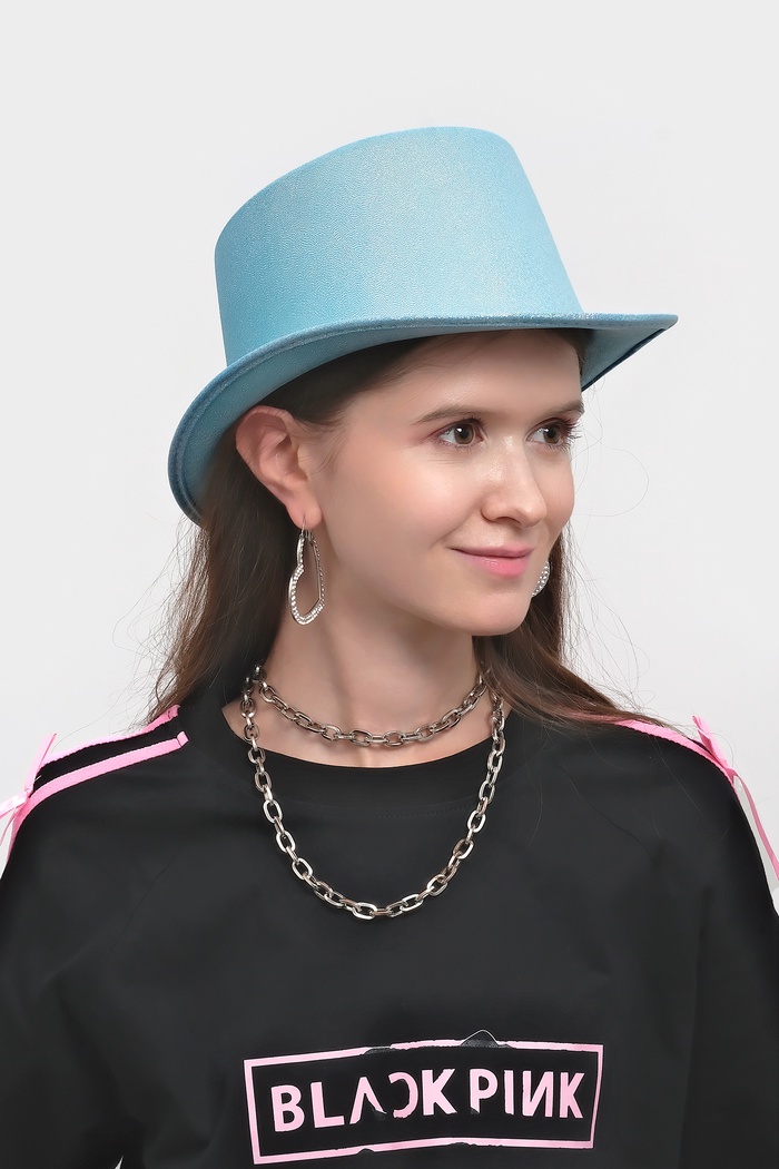 Карнавальная шляпа «Цилиндр», голубая с блёстками, р-р. 56-58 — Характеристики