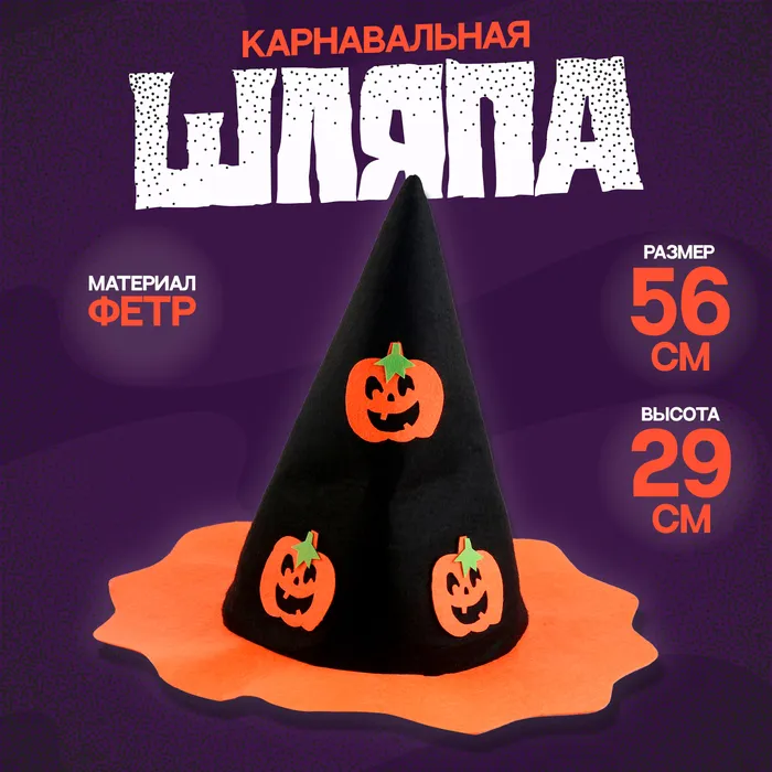 Карнавальная шляпа — идеальный аксессуар для создания запоминающегося образа на Хэллоуин или костюмированную вечеринку. Эта шляпа добавит вашим нарядам мистическую атмосферу и подчеркнёт тематику вашего костюма.