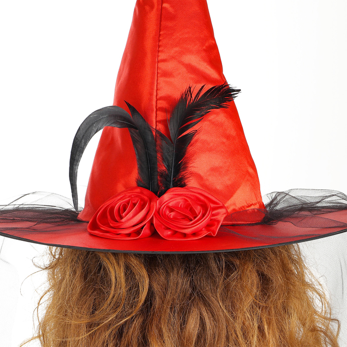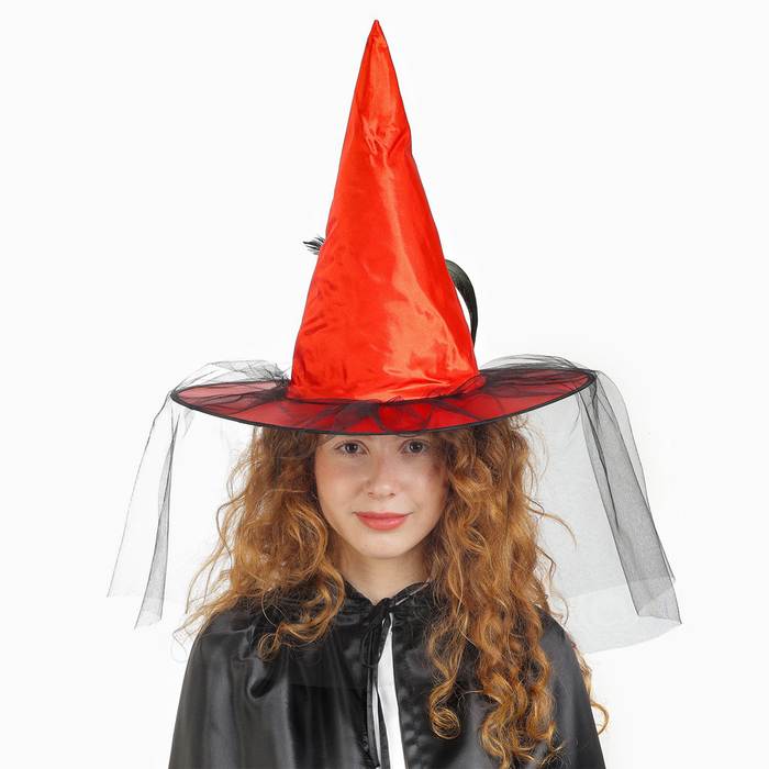 Карнавальная шляпа «Ведьмочка», с фатой, красная — Характеристики