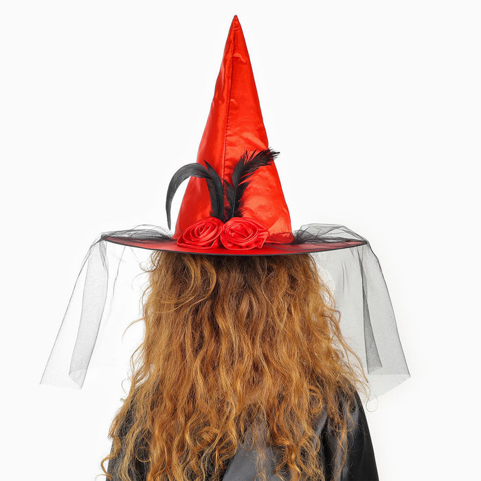 Карнавальная шляпа «Ведьмочка», с фатой, красная