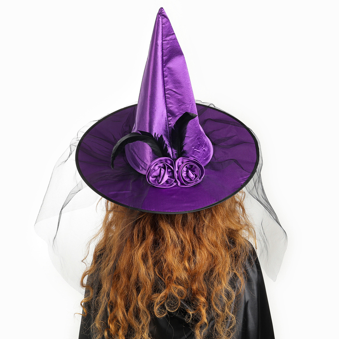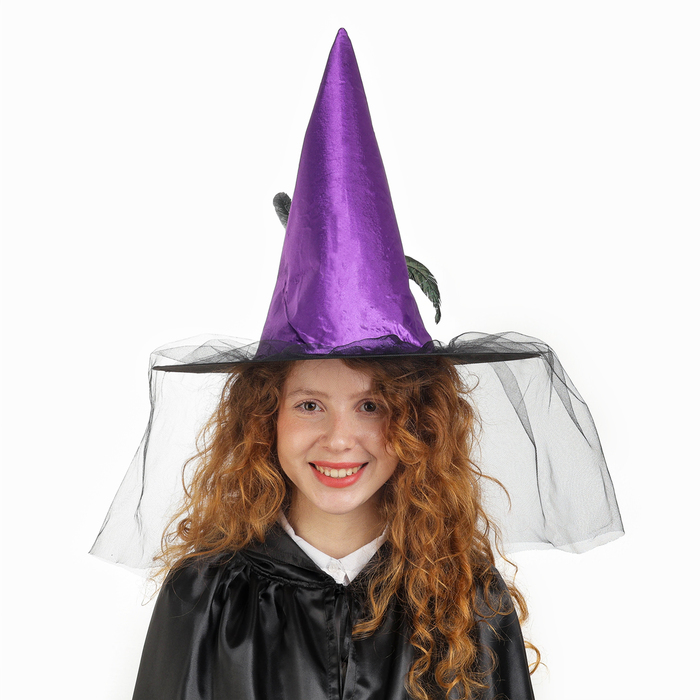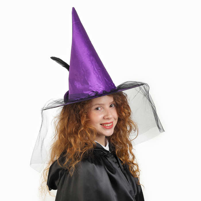 Карнавальная шляпа «Ведьмочка», с фатой, р-р. 56-58, сиреневая — Характеристики