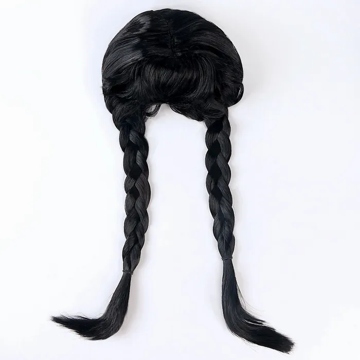 • Парик: — пышный чёрный парик с косичками добавит образу драматичности и загадочности.